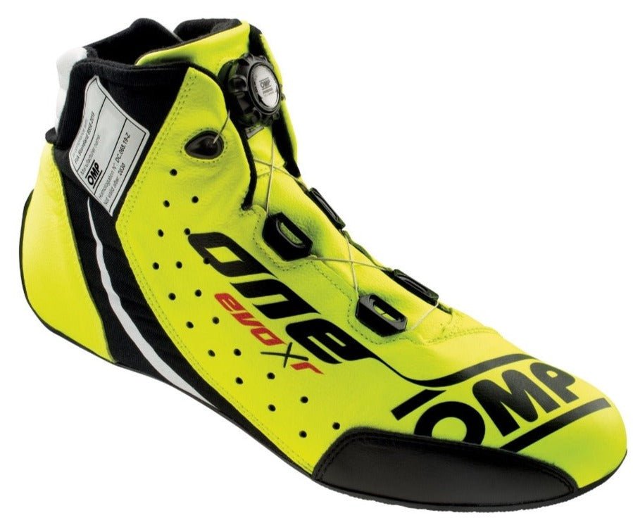 Rotor lace system, bold colors, and leading design make the OMP ONE EVO X R Race Shoe the pro racer's favorite. Modern and aggressive design made of perforated leather with new injected sole for maximum grip and resistance to wear. A new foot support with nylon reinforcement reduces stress on the foot and guarantees maximum sensitivity.